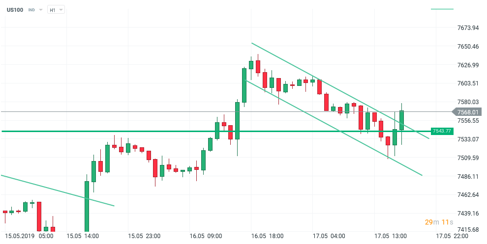 În sesiunea asiatică, răcire a enuziasmului care condusese bursele în mare parte din sesiunea americană de ieri. În presa oficială, atitudinea SUA a fost aspru criticată, iar tonul patriotic a indus temeri că o soluție este la mare distanță. Yuanul s-a depreciat în raport cu USD, și tendința a fost stabilizată în sesiunea europeană cu ajutorul unor informații pe surse despre intenția PBOC de a nu permite scăderea semnificativă a monedei, dincolo de pragul de 7 (cam 1.5% distanță de nivelul actual). Poziția Chinei - cea oficială - a atins o zonă sensibilă: indicii din SUA au deschis pe un minus de aproape 1%. Cu toate acestea, sesiunea a adus și momente pozitive, preluate mai degrabă ca unele corecții la adresa secvenței anteriore: confirmarea oficială a amânării taxelor vamale pentru automobilele importate din Europa, sau, mai recent, foarte buna încredere a consumatorilor semnalată de sondajul Univ. din Michigan, al cărei indice a avansat cu puncte la 102. O contraparte a celor două vești bune se poate totuși găsi: Trump a declarat că este de acord cu părți ale raportului despre sectorul auto (înseamnă că, după prelungire, probabilitatea de a ajunge la impozitarea suplimentară a importurilor este reală) și inflația estimată de respondenții la sondaj a ajuns la 2.8% pentru următorul an (de la 2.5% în varianta anterioară) și 2.6% pe 5 ani (de la 2.3%). Perspectiva tehnică, pe termen scurt, pare favorabilă, dar în aceste perioade volatile, e preferabilă o dublă confirmare printr-o închidere a 2 ore succesive în afara canalului de trend descendent.