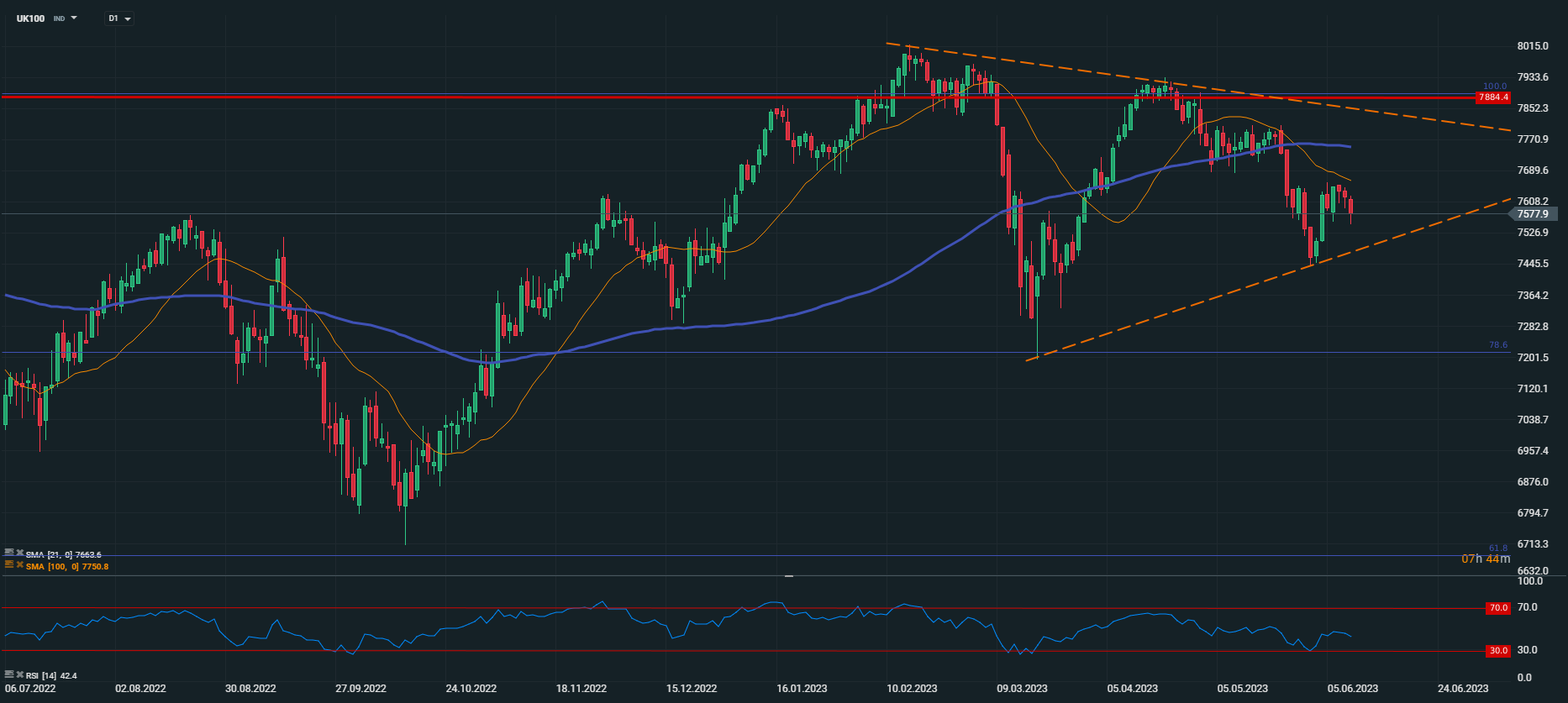 Spre sfârșitul săptămânii trecute, FTSE 100 a revenit de la cele mai scăzute niveluri de la sfârșitul lunii martie, la 7.441, după ce SUA a ajuns la un acord de ridicare a plafonului datoriei, China pregătea noi măsuri pentru a-și susține piața imobiliară și datele solide ale forței de muncă din SUA, dar o valoare mai ridicată decât se aștepta a șomajului de 3,7% și stabilizarea creșterii salariilor au oferit Rezervei Federale a SUA spațiu pentru o pauză în iunie.