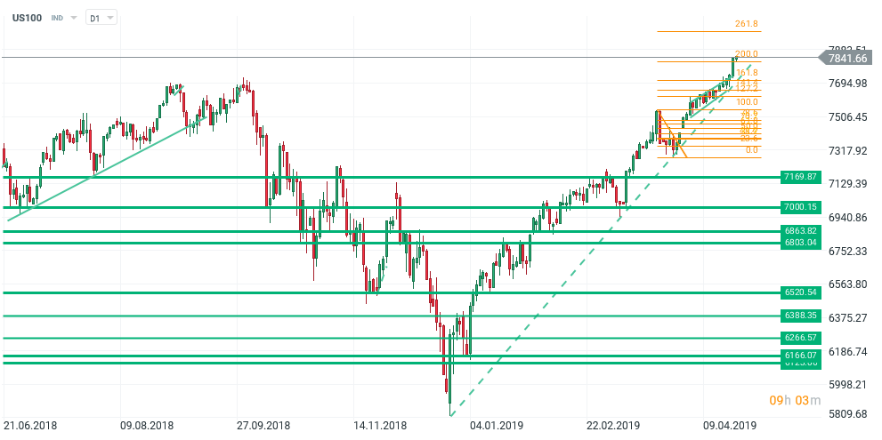 Starea de spirit constructivă se menține astăzi, înainte de deschidere, și nu doar cotațiile o oglindesc. Un articol precum cel postat pe site-ul Bloomberg cu titlul ”Sunt multe lucruri plăcute vis-a-vis de acțiunile la vârfuri istorice” oferă argumente optimiste precum starea economiei și inflația ținută sub control, în timp ce estimările pentru raportul P/E (între prețul de piață al indicelui și profitul cumulat și ponderat al componentelor sale) de 17.5 pentru 2019 și 15.5 pentru 2020 sunt nu departe de media de 16.2 de după cel de-al doilea război mondial. În plus, ne apropiem de luna mai, cu așteptări ridicate pentru semnarea unui acord cuprinzător între SUA și China. Ce ar putea să nu funcționeze? În perspectivă tehnica, trendul ascendent, accelerat ieri, este în plină derulare. Din perspectivă fundamentală, avansul petrolului și anunțurile de fuziuni și achiziții, pot oferi un carburant limitat - de la un anume nivel costul energiei operează mai degrabă ca o frână. China, prin vocea vocea premierului Li, anunță că economia e supusă unor riscuri descendente, cărora li se va răspunde prin reduceri de taxe și reforme - dar piața a luat deja, în mare parte, în calcul abordările stimulative. Riscurile par a nu fi luate în considerare la valoarea justă, și, deși nota din articolul menționat e optimistă, aceasta s-ar putea alătura unei atitudini de relativă complacere în fața posibilităților corective.