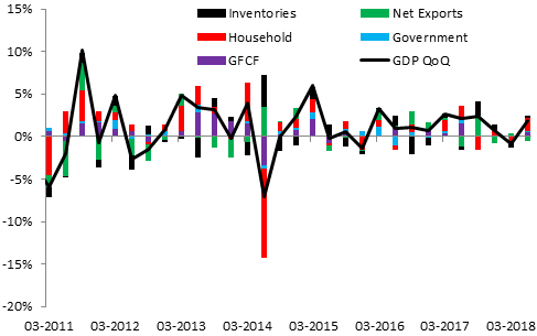 Economia Japoniei pare să-și revină după performanța slabă din Q1, fiind susținută de cheltuielile consumatorilor și ale companiilor. Sursa: Macrobond, XTB Research