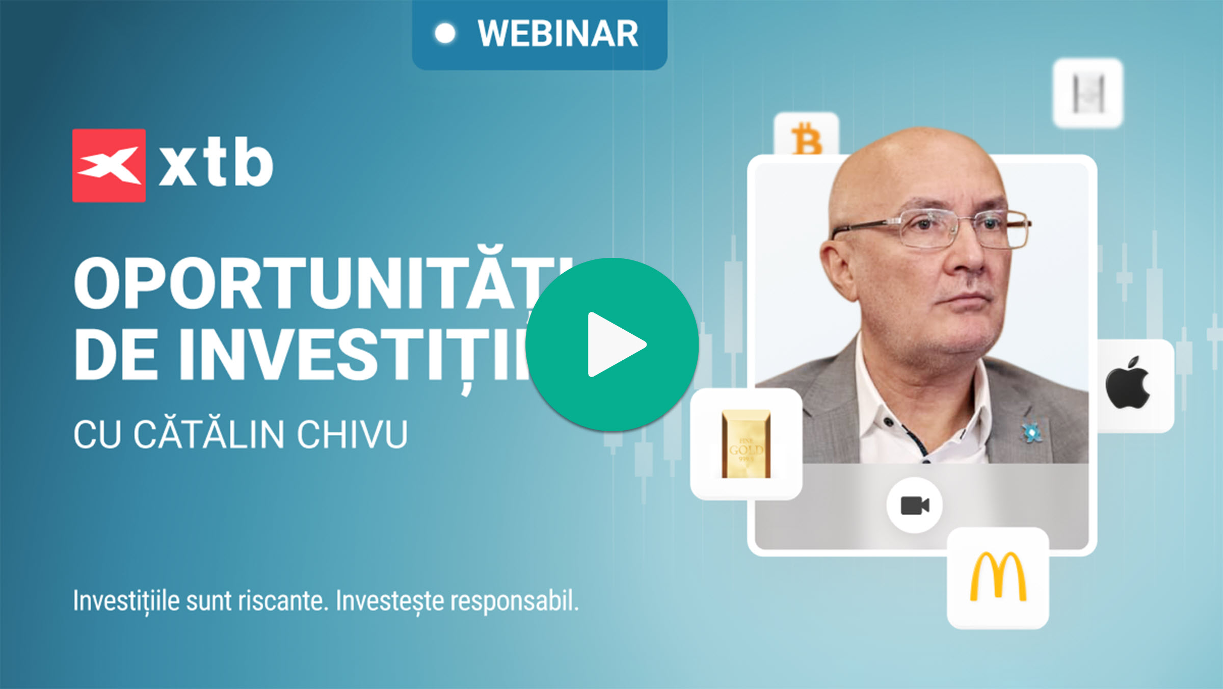 "Acest material este o comunicare de marketing în sensul articolului 24 alineatul (3) din Directiva 2014/65 / UE a Parlamentului European și a Consiliului din 15 mai 2014 privind piețele de instrumente financiare, și de modificare a Directivei 2002/92 / CE și a Directivei 2011 / 61 / UE (MiFID II). Comunicarea de marketing nu este o recomandare de investiții sau o recomandare de informații sau o recomandare care sugerează o strategie de investiții în sensul Regulamentului (UE) nr. 596/2014 al Parlamentului European și al Consiliului din 16 aprilie 2014 privind abuzul de piață ( reglementarea abuzului de piață) și de abrogare a Directivei 2003/6 / CE a Parlamentului European și a Consiliului și a Directivelor Comisiei 2003/124 / CE, 2003/125 / CE și 2004/72 / CE și a Regulamentului delegat (UE) 2016/958 al Comisiei din 9 596/2014 al Parlamentului European și al Consiliului în ceea ce privește standardele tehnice de reglementare pentru aranjamentele tehnice pentru prezentarea obiectivă a recomandărilor de investiții sau a altor informații care sugerează strategii de investiții și pentru dezvăluirea de interese particulare sau indicații de conflicte de interese sau orice alte sfaturi, inclusiv în domeniul consultanței în materie de investiții, în sensul Legii privind tranzacționarea cu instrumente financiare din 29 iulie 2005 (de ex. Journal of Laws 2019, articolul 875, astfel cum a fost modificat). Comunicarea de marketing este pregătită cu cea mai mare diligență, obiectivitate, prezintă faptele cunoscute autorului la data pregătirii și este lipsită de orice elemente de evaluare. Comunicarea de marketing este pregătită fără a lua în considerare nevoile clientului, situația sa financiară individuală și nu prezintă nicio strategie de investiții în niciun fel. Comunicarea de marketing nu constituie o ofertă de vânzare, oferire, abonament, invitație la cumpărare, reclamă sau promovare a oricărui instrument financiar. XTB SA nu este responsabilă pentru acțiunile sau omisiunile niciunui client, în special pentru achiziționarea sau cedarea instrumente, întreprinse pe baza informațiilor conținute în această comunicare de marketing. XTB SA nu va accepta răspunderea pentru nicio pierdere sau daună, inclusiv, fără limitare, orice pierdere care poate apărea direct sau indirect, efectuată pe baza informațiilor conținute în această comunicare de marketing. În cazul în care comunicarea de marketing conține informații despre orice rezultat cu privire la instrumentele financiare indicate în acestea, acestea nu constituie nicio garanție sau prognoză cu privire la rezultatele viitoare. Performanțele anterioare nu indică neapărat rezultatele viitoare și orice persoană care acționează pe baza acestor informații o face pe propriul risc. Acest material nu este emis pentru a influenta deciziile de tranzacționare ale niciunei persoane. Informațiile cuprinse în cadrul acestui material nu sunt prezentate pentru a fi aplicate, copiate sau testate în cadrul tranzacțiilor dumneavoastră. Informațiile cuprinse în cadrul acestui material sunt emise în baza experienței proprii a emitentului și nu reprezintă o recomandare individuală, nu vizează atingerea anumitor obiective, randamente financiare și nu se adresează nevoilor niciunei persoane anume care ar primi-o. Premisele acestui material nu au în vedere situația și persoana dumneavoastră deci nu recomandăm utilizarea acestor informații sub orice formă. Utilizarea informațiilor cuprinse în cadrul acestui material în orice modalitate se face pe propria dumneavoastră răspundere. Acest material este emis de către un analist pentru care își asumă răspunderea XTB SA, persoană juridică autorizată de KNF – Autoritatea de Supraveghere Financiara din Polonia."