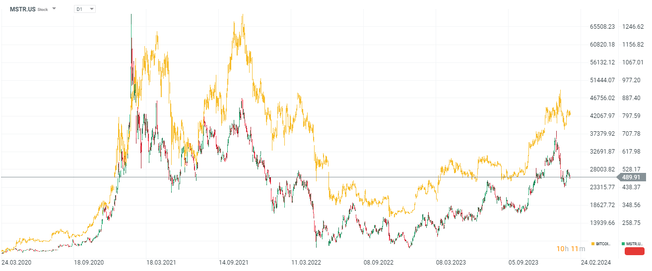 Performanța acțiunilor MicroStrategy va fi, fără îndoială, puternic corelată cu rezultatele Bitcoin în sine, pe care compania îl achiziționează în mod regulat, făcându-l fundația de bază a activității sale. Rolul rapoartelor trimestriale este semnificativ limitat, având în vedere că societatea a devenit, în esență, un holding Bitcoin; de obicei, prezintă o volatilitate mult mai mare decât criptomoneda însăși. Rezultatele pentru Q4 2023 nu vor determina prețul acțiunilor în trimestrul curent, deoarece prețul acțiunilor va continua să urmeze dinamica pieței Bitcoin.