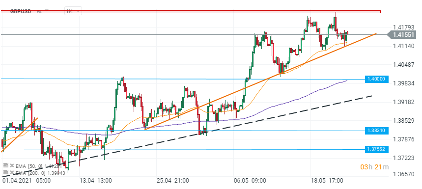 GBP menține câștigurile recente. Ultimele rapoarte sugerează că vaccinurile sunt eficiente pentru varianta indiană a virusului, sugerând că economia britanică este în continuare pe drumul către o redeschidere completă pe 21 iunie.