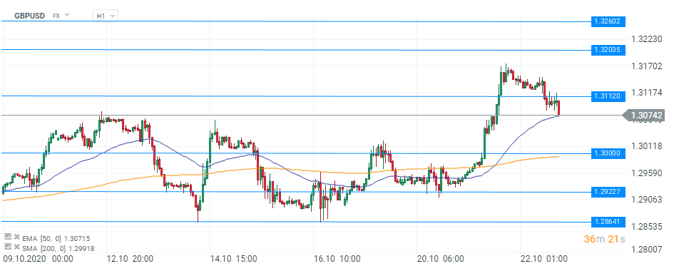 Investitorii par să devină mai prudenți cu privire la informațiile referitoare la Brexit, motiv pentru care mișcările din piață par să se lase așteptate, așteptând știri tangibile. Participanții la piață nu au fost niciodată convinși de poziția politică a Marii Britanii, lira menținându-și poziția, iar în acest moment cele două părți par destul de încrezătoare în atingerea unui acord. Din punct de vedere grafic, lira continuă să se afle într-o poziție bună. În ciuda, scăderilor de astăzi, se menține deasupra zonei psihologice cheie de la 1,30. În plus, în ajutorul cumpărătorilor vin și cele două medii mobile, de 50 și 200 de perioade, care ar putea opri declinurile. Informațiile referitoare la pachetul de ajutor din Marea Britanie ar putea să ajute atitudinea în următoarea perioadă, aspect care ar trebui urmărit. Astfel, un prim obiectiv pentru cumpărători este la 1,31120, nivel spart anterior.