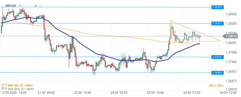 Din punct de vedere tehnic, GBPUSD se află într-o situație interesantă. Începând de ieri, cotația a evoluat în interiorul unei formațiuni de triunghi, dar având în vedere că spațiul de oscilație devine tot mai restrâns am putea asista la o mișcare decisivă în următoarele ore. Astfel, în cazul unei spargeri ascendente, am putea discuta despre o reluare a impulsului de creștere, aspect așteptat de către cumpărători. În caz contrar, o spargere în jos ar putea să ducă la o reașezare a cotației. Totuși, nu trebuie să ignorăm un alt aspect bullish, o situație Golden Cross, media mobilă de 50 de perioade depășind media mobilă de 200, ceea ce indică o secvență intensă din partea cumpărătorilor.