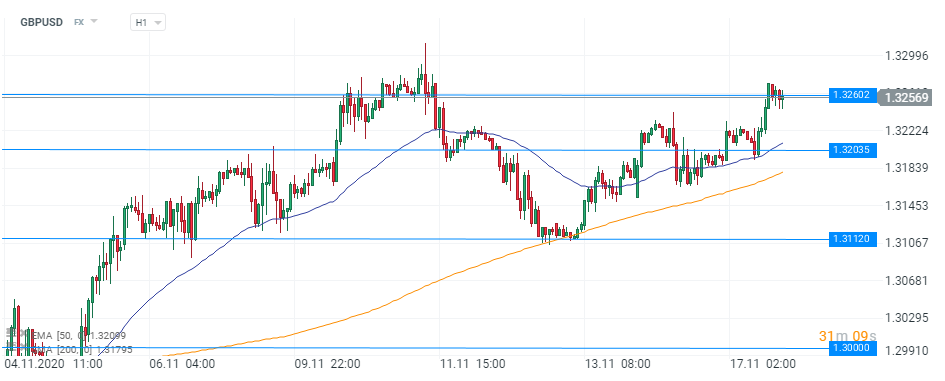 Lira a avansat la un moment dat cu 0,6%, atingând un maxim intraday la 1,3272 dolari. Ulterior, moneda a suferit o ușoară corecție, nivelul de rezistență de la 1,32600 dovedindu-se a fi un prag destul de dificil de depășit de către cumpărători în acest moment. Această zonă a întrerupt entuziasmul investitorilor și săptămâna trecută, când accentuarea apetitului pentru risc a dus la o slăbiciune a dolarului american. Un prim nivel de susținere este reprezentat de 1,32, în timp ce extinderea unei mișcări ascendente ar necesita o confirmare prin spargerea maximelor locale de săptămâna trecută de la 1,33150. Conform unui sondaj Bloomberg, lira sterlină ar putea crește până la 1,35 dolari până la jumătatea anului 2021, în cazul în care cele două tabere ajung la un acord de liber schimb. În caz contrar, studiul sugerează o posibilă corecție de 5% pentru același interval de timp.