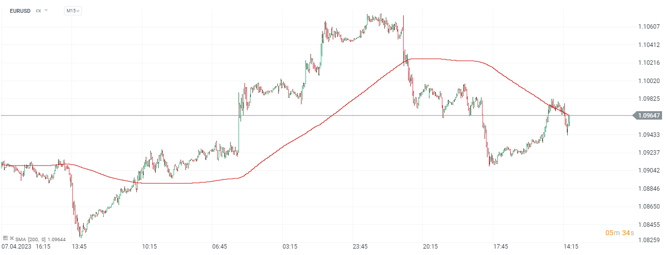 EURUSD încearcă să oprească scăderile. Cu toate acestea, linia de rezistență pe termen scurt sub forma SMA200 pe intervalul M15 se poate dovedi crucială. Congresul SUA urmează să voteze săptămâna viitoare proiectul de lege privind plafonul datoriei. Sursa: xStation5