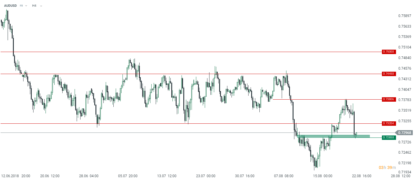 Dolarul australian s-a depreciat în timpul nopții fiind afectat de problemele politice dar și de perioada bună a dolarului american. Din punct de vedere tehnic, perechea s-ar putea aprecia pe termen scurt după testarea nivelului de suport de la 0,7285. Sursa: xStation5