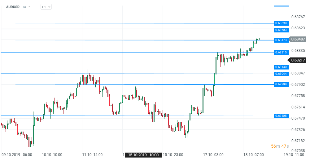 Ultima sesiune a săptămânii ne aduce o imagine mai calmă la nivelul piețelor, investitorii fiind mai prudenți în așteptarea de vești pozitive fie de pe plan comercial, fie un rezultat optimist în ceea ce privește acordul Brexit. Dispariția entuziasmului este cauzată preponderent de numărul tot mai mare de factori de risc la nivel global, printre care tensiunile comerciale dintre cei mai importanți actori economici, Brexit-ul, semnele de încetinire economică pe plan global sau problemele geopolitice. În acest context, piețele de capital au o evoluție mixtă, iar cele mai ample mișcări se pot vedea la nivelul perechilor valutare din care fac parte monedele de la Antipozi. Dolarul australian și cel neozeelandez se apreciază în raport cu toate monedele majore. Performanțele bune ale celor două monede se datorează raportului destul de solid de pe piața muncii din Australia. Datele publicate joi dimineața au adus o ușoară scădere a ratei de șomaj de la 5,3% la 5,2% și un număr de 14,7 mii de noi locuri de muncă adăugate în economia australiană. Analizând detaliile vedem un semnal pozitiv: o creștere cu 26,2 mii a locurilor de muncă full-time, concomitentă cu o reducere de 11,4 mii a locurilor de muncă part-time. Aceste rezultate s-au dovedit a fi pozitive pentru dolarul australian care s-a apreciat joi dimineață în urma publicării datelor, moneda reușind să-și extindă avansurile și în timpul sesiunii de vineri. Acest scenariu a susținut și dolarul neozeelandez a cărui evoluție este corelată pozitiv cu cea a vecinului său. Astfel, în timpul sesiunii de joi au avut loc două secvențe destul de ample de creștere care au făcut ca prețul să spargă niveluri consecutive de rezistență la 0,67909; 0,68044 și 0,68130, până în apropierea unui alt prag de interes de la 0,68315. Ziua de vineri a început într-o manieră mai timidă, investitorii întâmpinând probleme în depășirea nivelului menționat anterior, dar, ulterior, au găsit energia necesară pentru a depăși acest obstacol, fapt ce a dus prețul până la 0,68473. În eventualitatea în care acest nivel va fi depășit, cumpărătorii ar putea impulsiona prețul către 0,68603 și 0,68690.