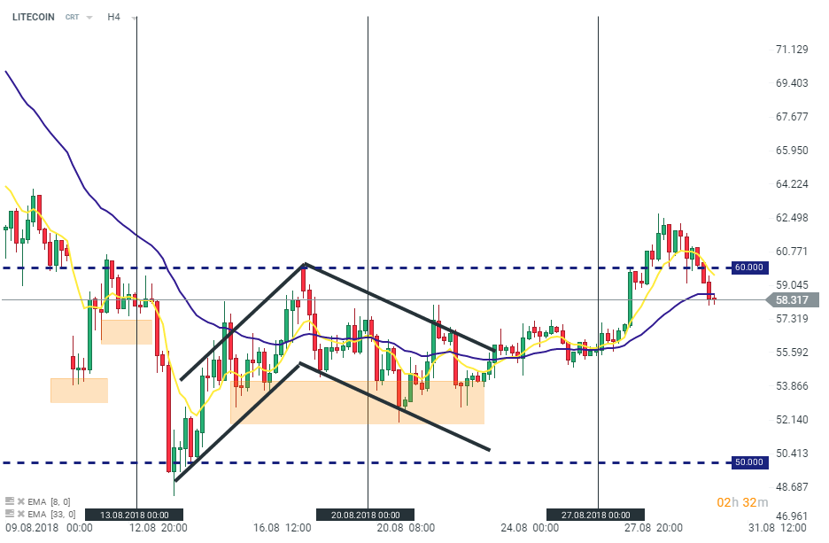 - Litecoin (LITECOIN în xStation5) revine sub nivelul de 60 de dolari