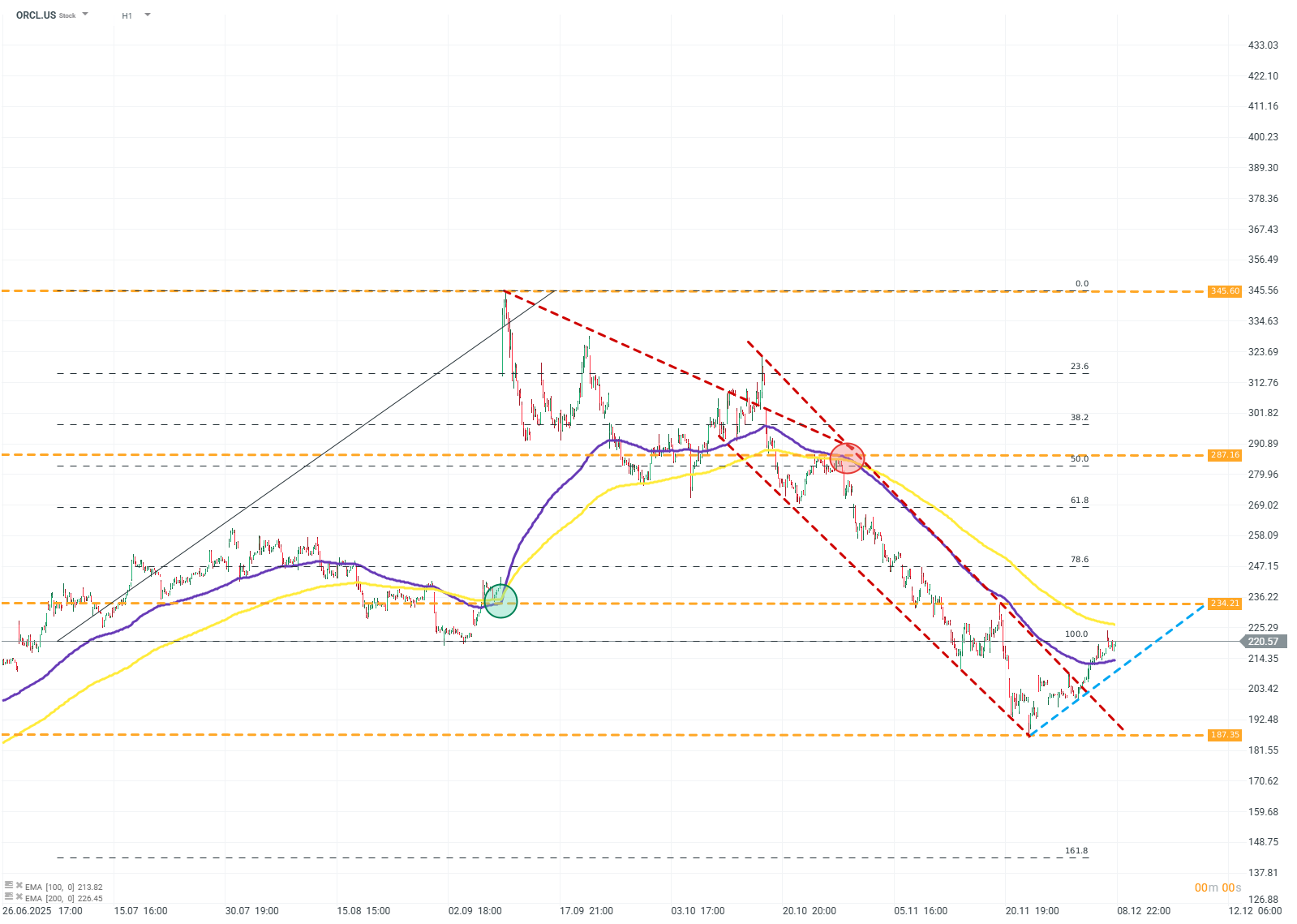 - Acțiunile Oracle au înregistrat recent o creștere și o scădere rapide.
