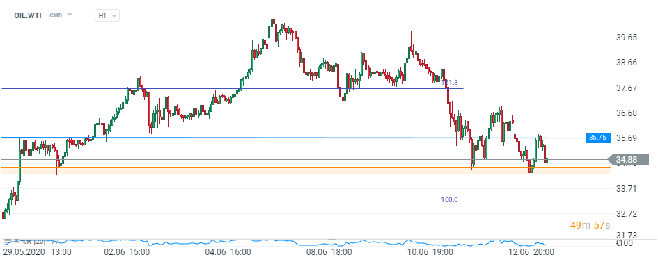 Din punct de vedere grafic, putem spune că petrolul WTI pare să fi rămas blocat în interiorul unui canal în această sesiune. Limita superioară a canalului este reprezentată de nivelul de la 35,75 USD care este marcat de mai multe reacții ale prețului, atât din perspectivă de suport cât și de rezistență. Pe de altă parte, limita inferioară este zona 34,60 - 34,40 USD. Astăzi am asistat deja la un ricoșeu din acest nivel, iar la momentul scrierii, prețul se apropie din nou de zona menționată. Având în vedere evoluția de astăzi, ne-am putea aștepta la o respingere ascendentă care ar deschide drumul către nivelul de rezistență menționat anterior.