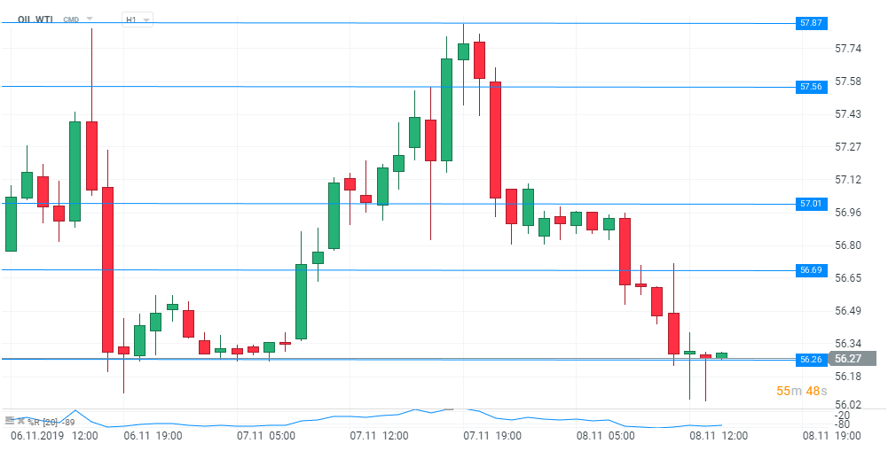 Fiind ultima sesiune, traderii, cel puțin la nivel european, par a fi într-o stare de așteptare, fiind mulțumiți de evoluția piețelor din această săptămână, dar și mai prudenți, dorind să aștepte un posibil flux de știri din timpul weekend-ului care să aducă mai multă claritate cu privire la stadiul negocierilor comerciale. Sentimentul constructiv s-a transmis și la nivelul altor piețe, înregistrându-se avansuri remarcabile pe majoritatea activelor considerate riscante. În această categorie intră și petrolul, care a traversat printr-o perioadă foarte interesantă. Sesiunea de ieri a început într-o manieră pozitivă, veștile bune de pe plan comercial coroborate cu semne de îmbunătățire ale economiei la nivel punctual, dar și global, au dus la apariția unui impuls ascendent semnificativ pe piața petrolului WTI. În doar câteva ore, prețul a urcat din zona de suport de la 56,26 și a testat bariera de la 57,87, câștigând peste 2,6%. Totuși, această mișcare nu a fost sustenabilă și, odată ce euforia s-a temperat și investitorii au început să reexamineze contextul și situația actuală, prețul a suferit o corecție descendentă care l-a readus în zona nivelului de suport de la 56,26. Astfel, acest scenariu ne sugerează că investitorii consideră că, pentru moment, acesta este un nivel mai realist de preț, ținând cont de deteriorarea perspectivelor cu privire la cerere și la o continuă consolidare a stocurilor de petrol din SUA, lucru sugerat și de faptul că, pe interval de o săptămână, cotația WTI înregistrează o variație ușor pozitivă, dar foarte aproape de nivelul 0.