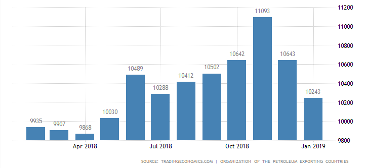 Producția lunară de petrol în Arabia Saudită. Sursa: tradingeconomics.com