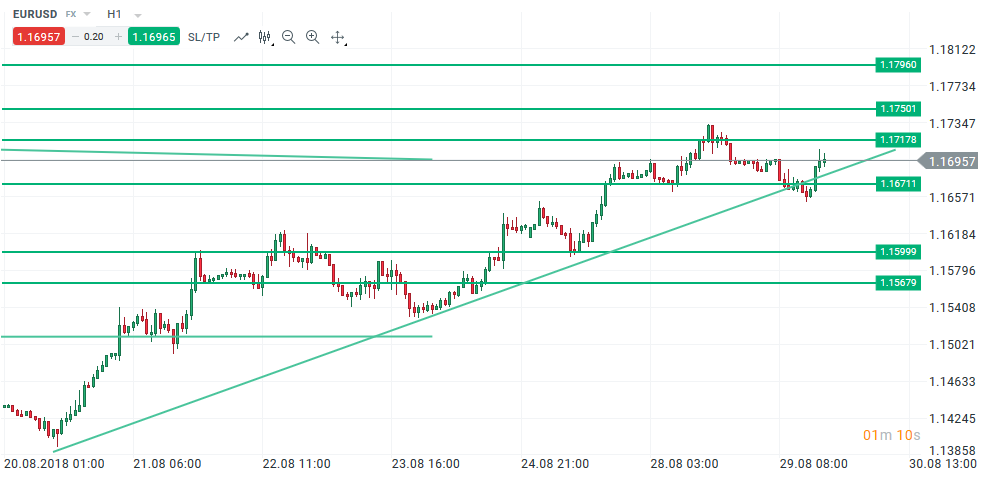 Datele preliminare (a doua variantă, după cele în avans, dar departe de a fi cele finale) arată un salt economic notabil în SUA: 4.2% anualizat în trimestrul al doilea față de primul. Consumul a tras în sus economia, cu toate că, față de așteptări, ritmul a fost cu 0.2 puncte mai jos, la 3.8% anualizat. Deflatorul, utilizat în raportarea PIB-ului real, a fost la 3.2%, în creștere de la 2% în trim. anterior, însă PCE Core a ajuns la 2%, de la 2.2%. Sectorul imobiliar primește, însă, o nouă veste proastă: tranzacțiile în derulare au scăzut cu 0.7%. Cei mai mulți analiști așteptau o creștere, mediana fiind de 0.3%, dar iată că avem de gestionat o nouă scădere, după ce în trei din patru luni precedente se înregistrase o contracție. Dacă tendința ascendentă a dobânzilor se va menține, semnale precum acesta, împreună cu încetinirea avansului prețurilor arătată de indicele S&P/CS20 ar putea fi semne inițiale de avertizare. Știrea referitoare la tranzacții, alături de analiza componentelor care au dus la creșterea economiei SUA au generat modificarea prognozei de creștere a Goldman Sachs pentru trimestrul al treilea la 2.9% de la 3% anterior. Dolarul nu a reușit, astfel, să se mențină, EURUSD revenind peste linia de trend ascendent, cu toate că o altă veste bună a fost anunțată: Canada revine la masa negocierilor pentru NAFTA.