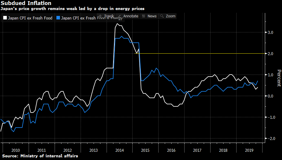 Deși creșterea headline a prețurilor din Japonia nu s-a modificat luna trecută, am observat o ușoară mișcare ascendentă a indicatorului core, care ar fi fi determinată de o majorare a impozitului pe vânzări de 2 puncte procentuale. Inflația headline a rămas la 0,2% în termeni anuali în octombrie, în timp ce inflația core, care exclude alimentele proaspete, a avansat ușor de la 0,3% la 0,4%, iar indicatorul core ce exclude alimentele proaspete și energia s-a apreciat de la 0,5% la 0,7%. În general, rezultatele au fost foarte apropiate de așteptările pieței. Pe de altă parte, atunci când excludem efectele majorării impozitului pe vânzări din luna octombrie, precum și măsurile guvernamentale prin care educația preșcolară să devină gratuită, obținem o încetinire a ritmului de creștere a prețurilor. Astfel, datele subliniază că Banca Japoniei este încă departe de a-și atinge obiectivul de inflație de 2% și este foarte probabil ca acest context să se mențină și în viitorul apropiat.