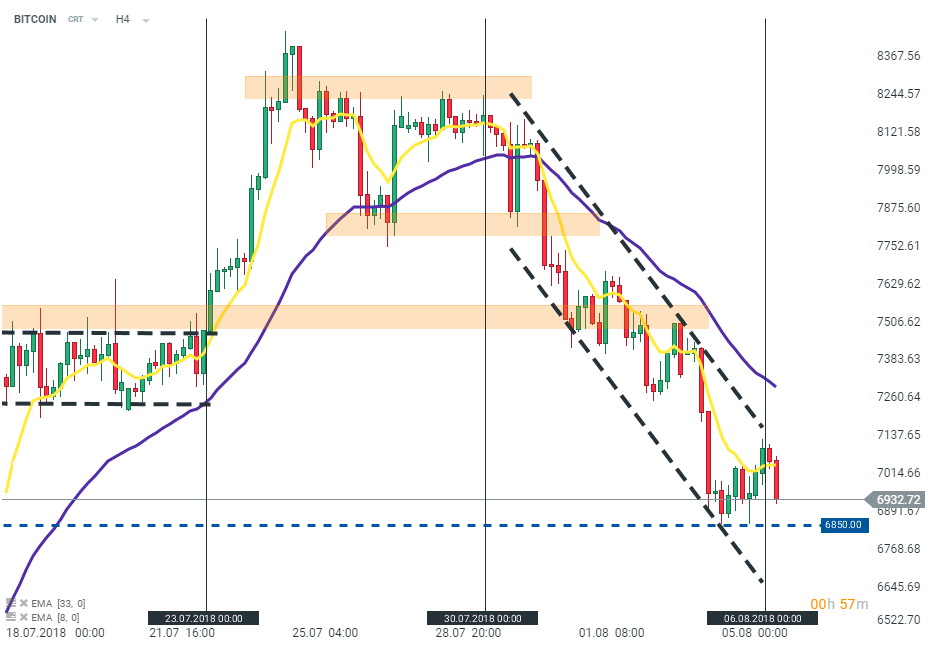 - Bitcoin (BITCOIN în xStation5) a spart nivelul de 7000 de dolari