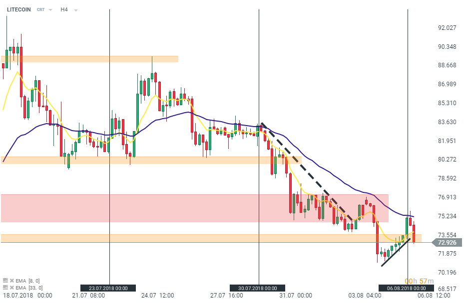 LITECOIN s-a tranzacționat la valori mixte în acest final de săptămână. Moneda digitală a suferit deprecieri sâmbătă, dar a reușit să se redreseze duminică. Prețul testează nivelul de 73 dolari la momentul scrierii articolului. Sursa: xStation5