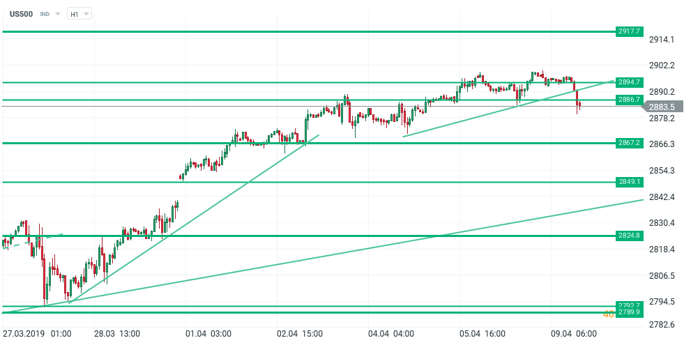 Președintele Trump a solicitat USTR să studieze lista de produse europene care pot fi taxate vamal suplimentar, într-o diversificare a efortului de rescriere a relațiilor comerciale. Deși volumul vizat nu este foarte mare, aprox. 11 mld. de dolari, mesajul e unul semnificativ: sunt vizate, printre altele, mijloace de transport aerian produse de Airbus, concurentul principal al Boeing, care trece, în prezent, prin momente mai grele. Tot în zona argumentelor negative pentru piață, FMI a revizuit în scădere estimarea de creștere economică a lumii, la 3.3% de la 3.5%, și pentru SUA de la 2.5% la 2.3%. Pe de altă parte, indicele de încredere al micilor companii, NFIB a postat un avans minimal, la 101.8 puncte, în timp ce încrederea consumatorilor în varianta IBD/TIPP a ajuns la 54.2 puncte, cifră, deși în scădere, mai bună față de estimări. Condițiile pentru corecție erau deja ”coapte”, US500 ajungând la aproape jumătate de procent scădere, într-un test inițial nu foarte concludent al percepției investitorilor americani față de noul front al tensiunilor comerciale. Dacă la închidere instrumentul ar rămâne în zona 2886.7 puncte sau mai sus, ar fi, din perspectiva noastră, o imagine de relativă încredere pe un orizont mediu.
