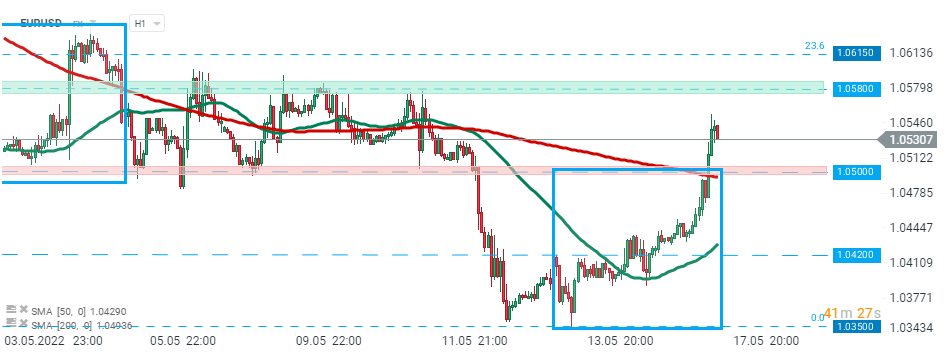 EURUSD a înregistrat o reacție relativ timidă după publicarea datelor de astăzi. Cea mai populară pereche valutară a continuat să se tranzacționeze în jurul nivelului 1,0530. Sursa: xStation5