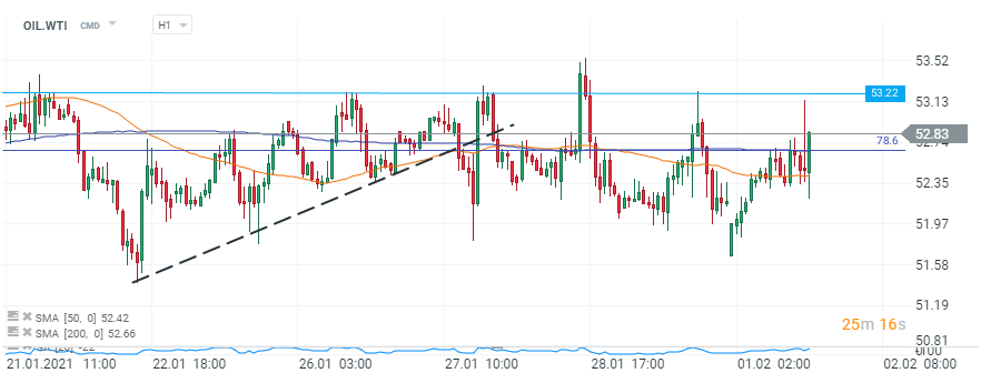 Creșterea prețurilor a fost limitată de datele dezamăgitoare din China. Indicatorul PMI manufacturier a fost sub estimări în ianuarie, indicând că eforturile de a ține sub control pandemia afectează cea mai mare economie din Asia. Acest lucru a accentuat ideea că restricțiile legate de virus vor pune presiune asupra cererii de petrol în următoarele săptămâni.