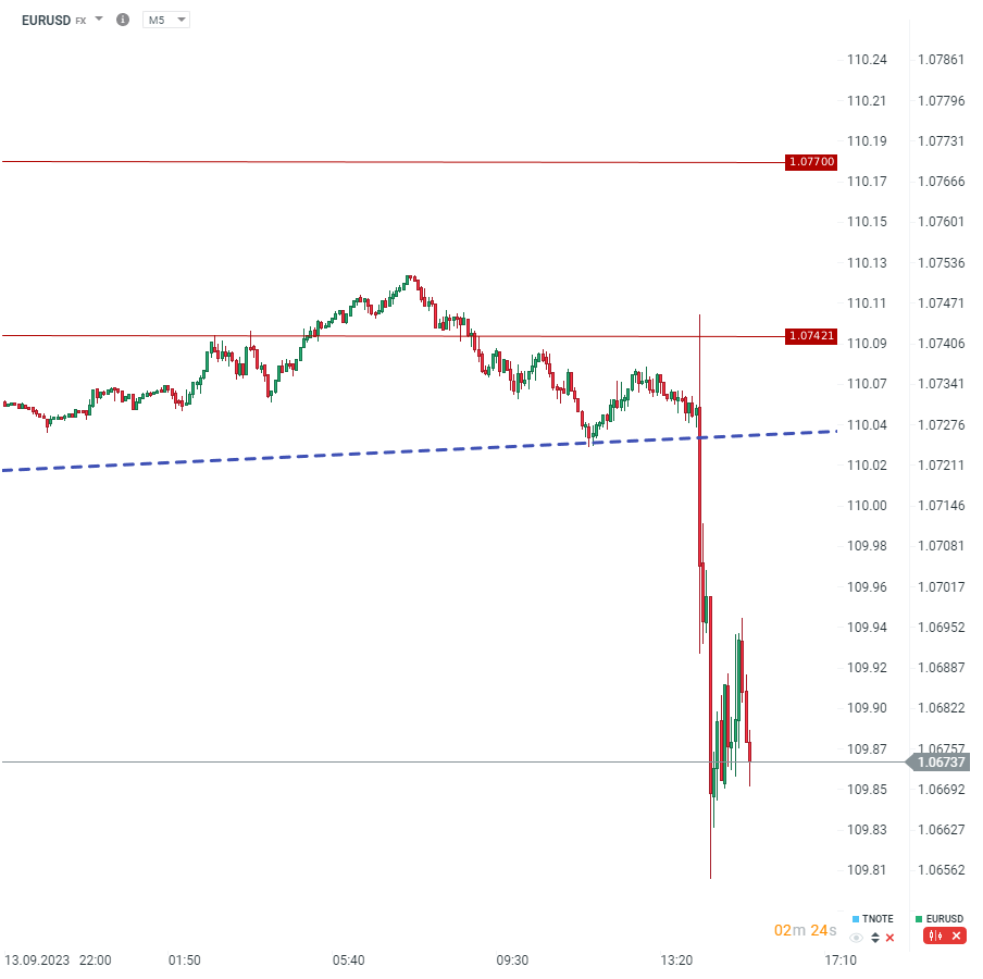 Piața evaluează doar o probabilitate de 10-15% pentru o nouă majorare a dobânzii din partea BCE în acest an și începe să evalueze reduceri ale dobânzilor în martie 2024. Înainte de conferința de presă, dar după decizie, piața seta o probabilitate de 30% pentru o nouă majorare.