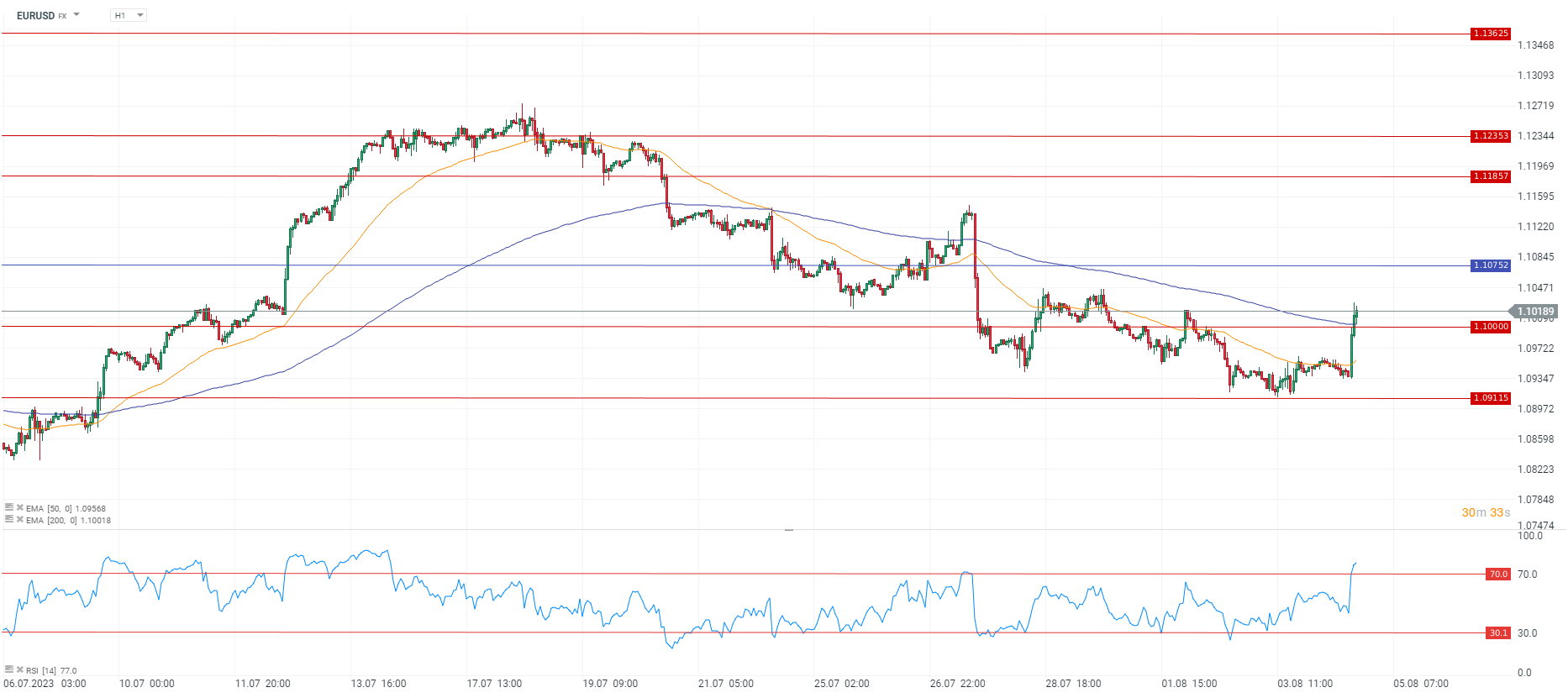 Totuși, această ultimă sesiune a săptămânii aduce o schimbare de atitudine față de EURUSD. Perechea avansează după ce raportul privind locurile de muncă din SUA a arătat un nivel puțin mai slab al salariilor din sectorul non-agricol. Rata șomajului rămâne scăzută, la 3,5% față de 3,6% luna trecută. Câștigurile medii orare au fost mai mari decât se așteptau, dar săptămâna medie de lucru a scăzut modest.