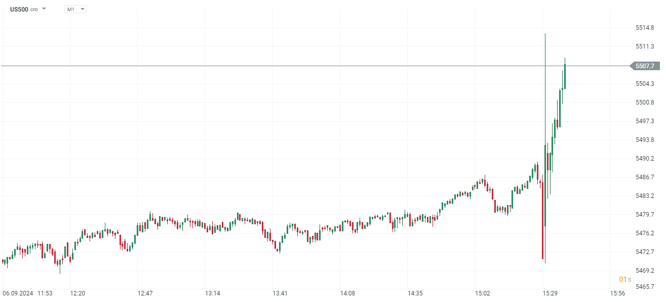 Raportul NFP pentru august a prezentat o creștere a numărului de angajați mai slabă decât se prognoza, la 142 de mii. Șomajul a stagnat la 4,2%, conform așteptărilor, dar veniturile medii pe oră au crescut atât în termeni lunari cât și anuali. Raportul a fost mixt dar pare a fi pe placul Fed, susținând o pozitie mai dovish, de a reduce dobânzile la următoarea întâlnire. Ca răspuns dolarul pierde teren la scară larg, în timp ce indicii americani câștigă teren.
