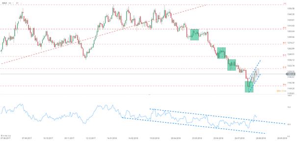 Chiar dacă prețurile aurului au suferit cea mai amplă corecție în timpul unui trend descendent, ritmul actual de creștere este insuficient pentru a considera că are loc o mișcare de inversare. Sursa: xStation5