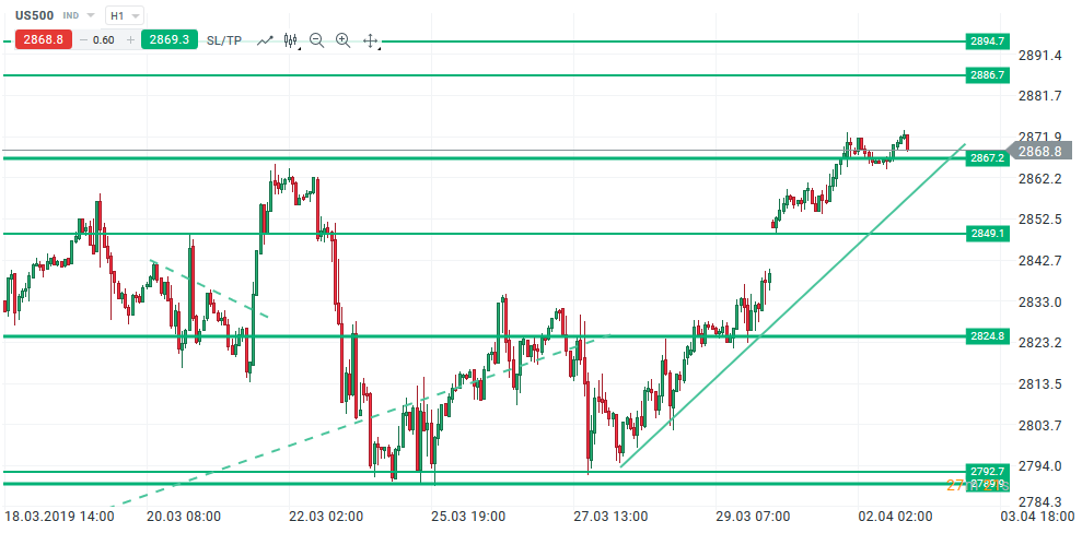 Semnele bune ale sesiunii trecute - în care am fost luați prin surprindere de raportarea ISM din SUA pentru industrie, inclusiv componenta comenzilor noi și a ratei de angajare - nu sunt uitate: în deschidere, pe futures, piața se păstrează în apropierea vârfului anului în SUA. Avertismentele Moody's, e drept, cu un alt orizont de timp asociat, sunt, însă, relevante, deși este la latitudinea fiecărui investitor să decidă dacă sunt sau nu prea pesimiste: dacă nu avem un acord între SUA și China în următoarele trei luni, am putea asista la o recesiune globală. Comenzile de bunuri de folosință îndelungată au scăzut neașteptat de mult în februarie, iar în varianta fără mijloace de transport, salt de doar 0.1%, care nu acoperă nici măcar declinul de 0.2% din ianuarie. Semnalul nu e foarte bun, pentru că e orientat spre viitor (comenzile se transformă în activitate viitoare) și reduc în sens descendent diferența percepută față de industria europeană, deși nu în totalitate. Astfel, cu indicii bursieri americani la niveluri înalte, cu așteptări restrânse despre vești noi pe frontul relațiilor SUA-China, și cu dezamăgiri în datele zilei, linia de trend ascendent ar putea fi testată, cel puțin. Suportul este, în ora următoare, la 2858, urmat de 2849 puncte, rezistența este la 2874 și apoi 2867 puncte.