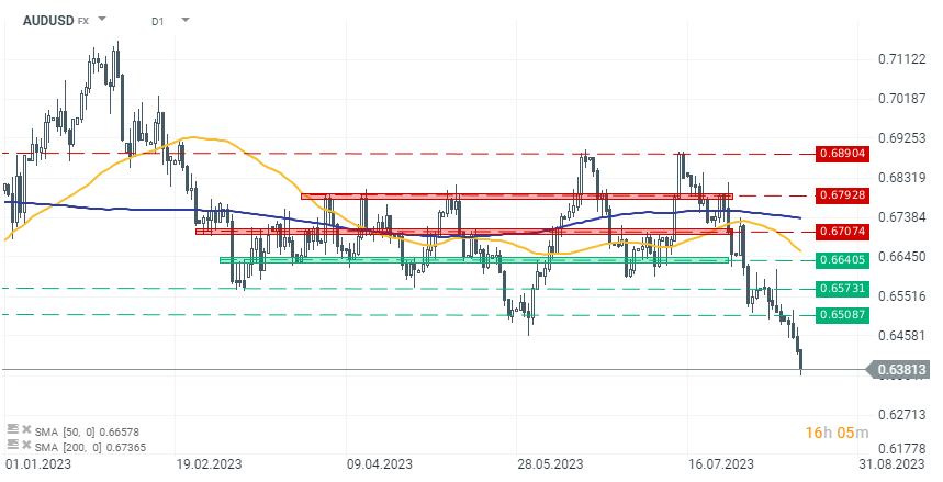 Dolarul australian își extinde declinul după date mai slabe decât se așteptau pe piața muncii. AUDUSD se tranzacționează la cel mai scăzut nivel din noiembrie 2022.