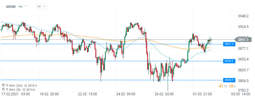 S&P 500 a încheiat sesiunea de luni cu un avans de 2,4%, marcând cea mai bună zi din iunie, pe măsură ce piețele au aprobat un al treilea vaccin COVID-19 în Statele Unite și după ce Camera Reprezentanților din SUA a dat undă verde pachetului de stimulente în valoare de 1.900 miliarde de dolari. Senatul american va începe dezbaterea proiectului de lege al președintelui Joe Biden săptămâna aceasta, când democrații își propun să adopte legislația printr-o metodă denumită „reconciliere”, care ar permite adoptarea proiectului de lege cu o majoritate simplă.