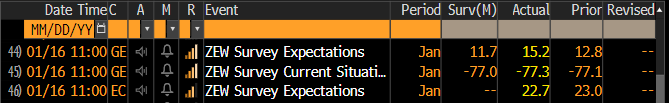 Sondajul ZEW german: Așteptări privind sentimentul economic, ianuarie: 15,2 (estimat 11,7; anterior 12,8)