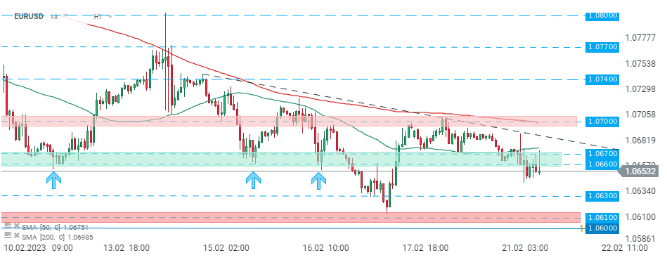 EURUSD a accentuat declinul după publicarea raportului PMI. Perechea a spart sub suportul major de la 1,0660. Sursa: xStation5