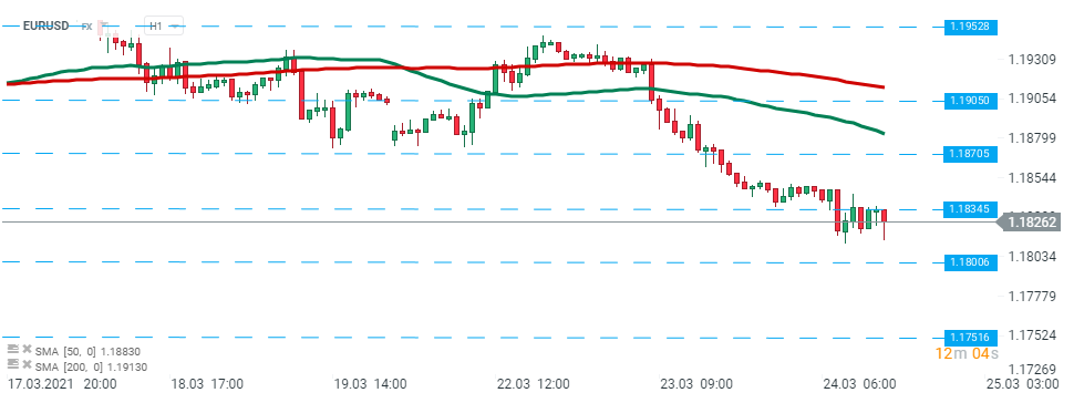 EURUSD a avut o reacție relativ timidă la raportul de astăzi. Cea mai populară pereche valutară a continuat să se tranzacționeze în jurul nivelului 1,1830. Sursa: xStation5