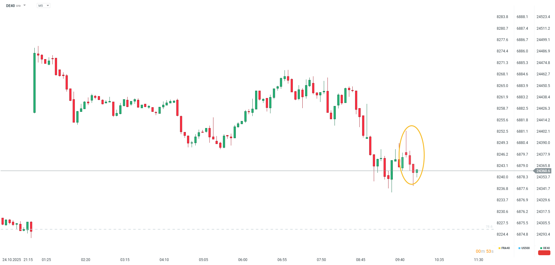 DE40 continuă vânzarea masivă de la începutul sesiunii, în ciuda sentimentului pozitiv al pieței legat de discuțiile dintre Trump și Xi de la sfârșitul acestei săptămâni.