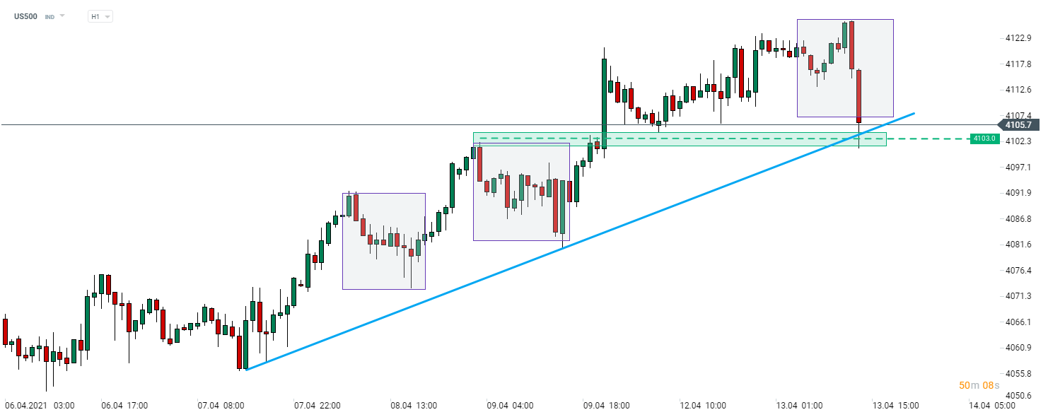 Indicele DAX (DE30) și contractele futures pe S&P 500 (US500) au scăzut cu aproximativ 0,5% în urma publicării știrilor. US500 a testat zona de suport pe termen scurt de la 4.103 puncte înainte de a-și reveni ușor.