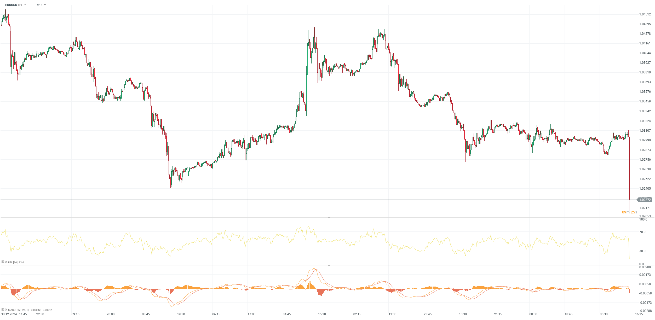 EURUSD încearcă să treacă sub nivelul minim din ianuarie de la 1,02237, nivel care a declanșat o vânzare de 0,7%. O depășire susținută a acestui suport ar putea deschide calea unei noi tendințe de scădere, în timp ce neatingerea acestuia ar putea semnala o posibilă revenire.