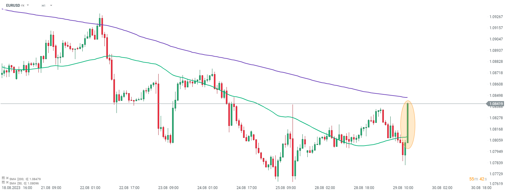EURUSD a urcat la un nou maxim zilnic după datele din SUA. Sursa: xStation5
