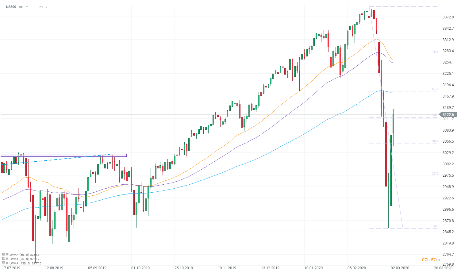 FOMC a redus dobânda cu 50 de puncte de bază, o mișcare care era așteptată în timpul întâlnirii standard care va avea loc peste 2 săptămâni! Piețele se apreciază în urma acestei decizii, US500 aflându-se deja la o distanță de aproximativ 300 de puncte de minime!