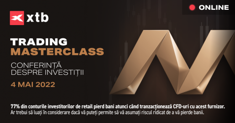 XTB te invită la conferința anuală Trading Masterclass, unde oportunitățile bursiere și de investiții sunt discutate împreună cu participanții. Vei avea ocazia să cunoști 9 analiști financiari și investitori la bursă care îți vor prezenta perspectivele lor despre subiectele momentului. Dacă vrei să afli și tu mai multe despre toate acestea, te invităm să te înscrii.