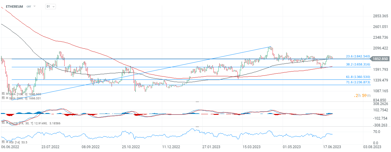 Ethereum este deasupra unui nivel de suport cheie - retragerea Fibonacci de 23,6%. Criptomoneda încă nu a reușit să urce la noi maxime de un an, în ciuda creșterii Bitcoin