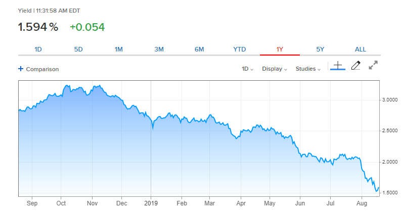 Randamentul titlurilor de stat pe 10 ani ale SUA. Sursa: CNBC.com