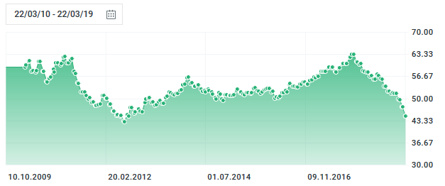 Indicele PMI pentru industrie în Germania, 2011- 2019. Sursa: xStation5