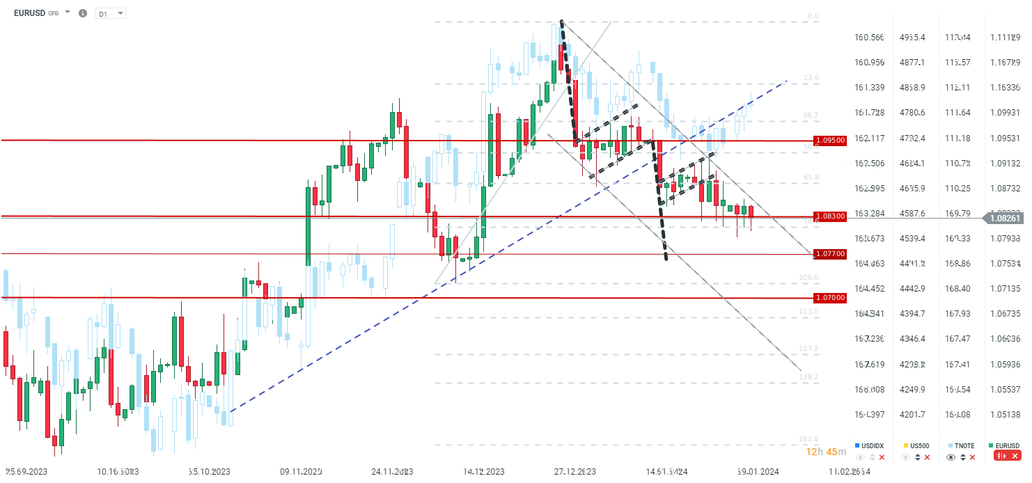 Prin urmare, nu este exclus ca, în timpul ședinței de astăzi, să existe semnale cu privire la viitorul QT. În cazul în care vor fi prezentate mai multe detalii, cum ar fi posibilitatea încetinirii în martie sau iunie sau încheierea QT până la sfârșitul acestui an, acest lucru ar putea duce la o slăbire a dolarului american și ar putea oferi sprijin pentru piața bursieră. Cu toate acestea, în cazul în care nu se oferă detalii concrete, semnalele privind prima posibilă reducere a ratei dobânzii vor fi mai importante.
