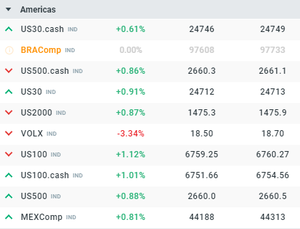 Piețele americane s-au aflat în creștere imediat după deschiderea pieței cash, US100 înregistrând cea mai bună performanță. Pe de altă parte, indicele VOLX s-a depreciat cu 3.35%.
