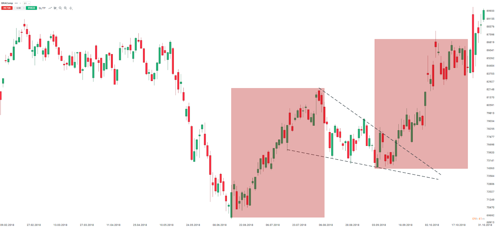 Un wedge descendent pe graficul BRAComp a reprezentat doar o corecție între două impulsuri ale prețului. Sursă: xStation5
