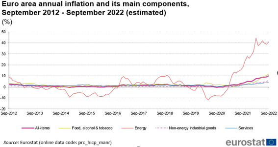 Costul energiei a fost un motor al inflației, în zona Euro prima estimare fiind de creștere de la 9,1% la 10% în luna septembrie.