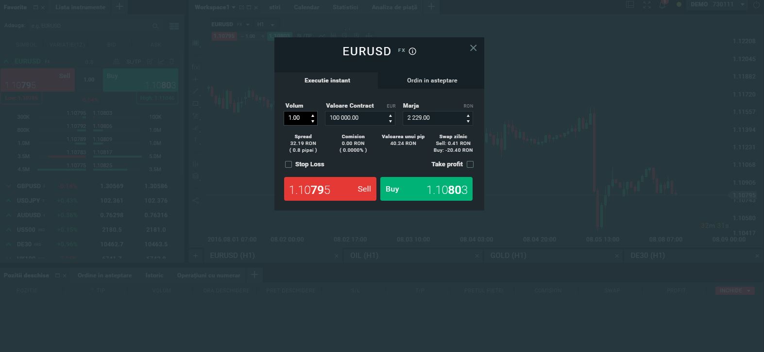Odată ce ai plasat o tranzacție pe EURUSD și piața se mișcă 1 pip în favoarea ta, atunci poziția ta începe să genereze profit. Acesta este motivul pentru care atunci când plasezi o tranzacție este posibil ca în câmpul Profit să vezi inițial o pierdere.