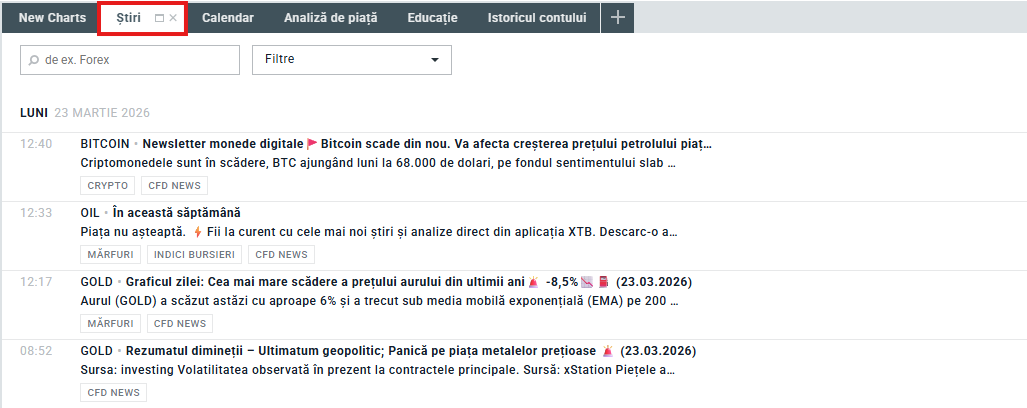 Pentru a avea acces la cele mai recente informații de pe piața petrolului, trebuie doar să faci clic pe secțiunea „Știri” din platformă.